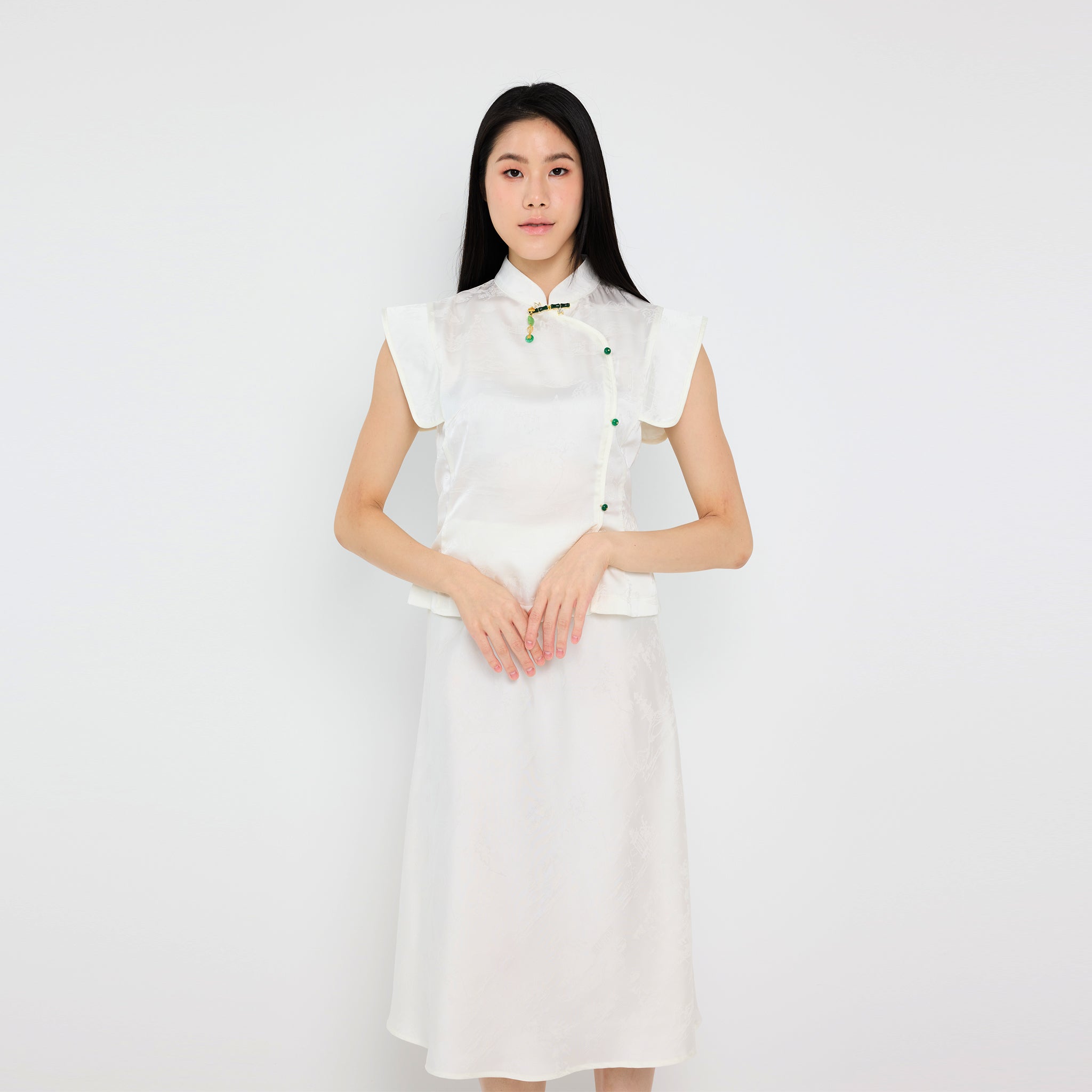 The 婷玉 Tíng Yù Skirt from our Lunar Collection ’26 is a versatile midi skirt designed for both elegance and ease. Crafted from premium satin that feels incredibly soft and comfortable against the skin, this piece offers a graceful drape that moves beautifully with you. Its timeless design is perfectly versatile, making it the ideal match for either the structured Tíng Yù Top for a coordinated look or the 欣妍 Xīn Yán Qipao Jacket for a more relaxed, layered aesthetic.