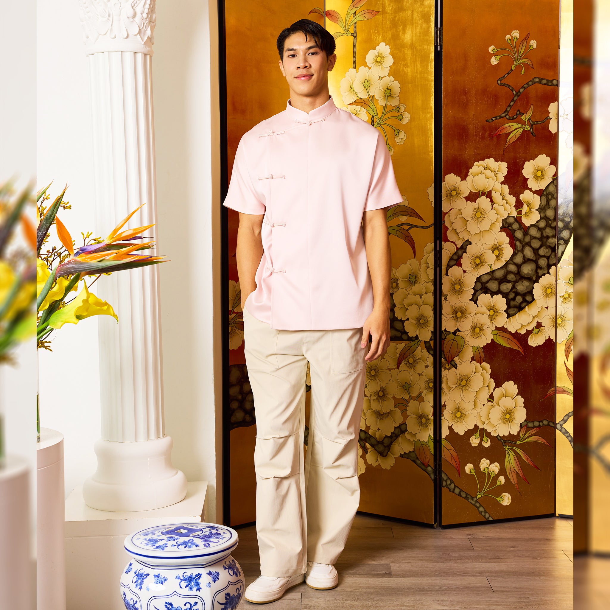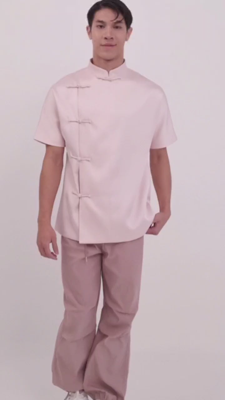 A classic top with a modern twist, featuring luxurious red satin fabric and a subtle sheen. The design is captivating with a traditional Mandarin Collar and authentic knot buttons (Pankou) down the side. Perfect for Chinese New Year celebrations and other festive occasions.