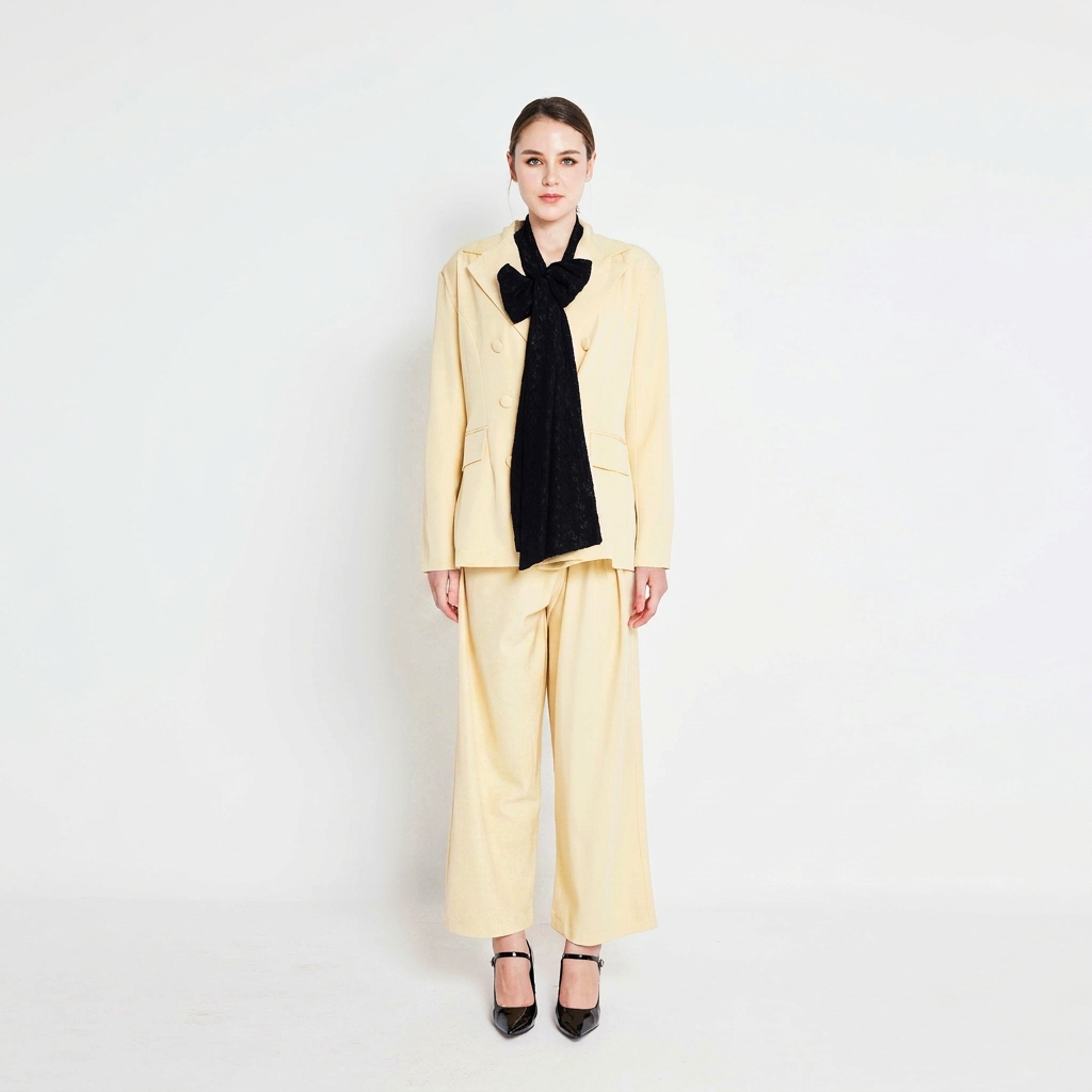 Make a statement with this chic double-breasted blazer set, designed with a structured silhouette for a sleek, polished look. Featuring a classic double-breasted front and functional side pockets, it blends style with practicality. Perfect for everyday elegance or special occasions, available in Pink, Mint Green, Yellow, and Black.