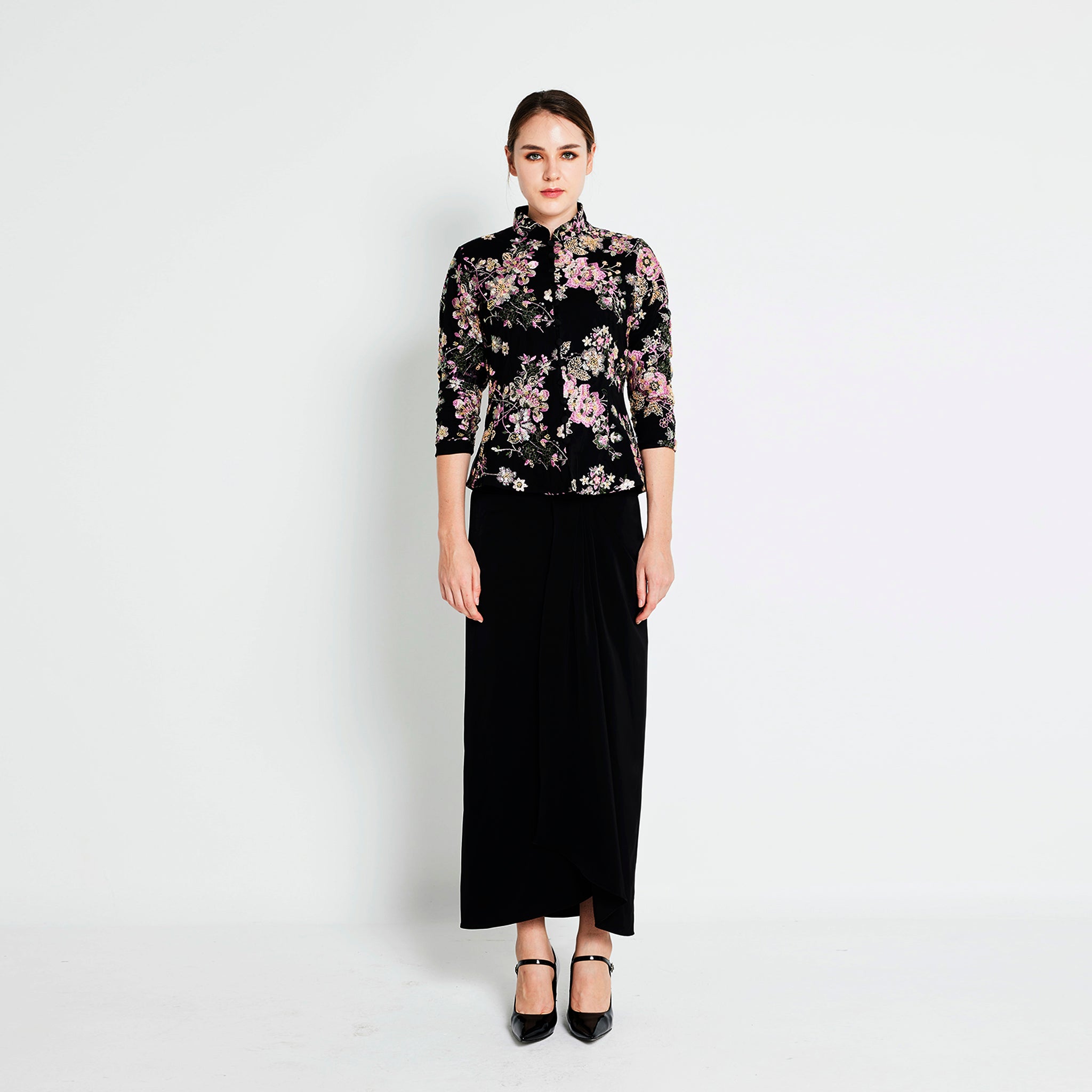 Celebrate the joy of Syawal with our exclusive Raya '26 Collection, featuring a V-neck Baju Kurung Modern crafted from delicate floral-patterned fabric and accented with intricate embroidery and signature center ribbons—a sophisticated, modest ensemble that transitions perfectly from festive Eid celebrations to polished office or formal wear.